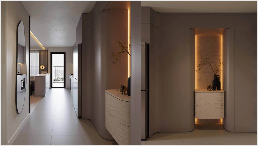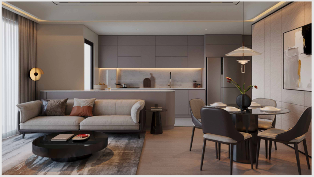 - Thiết kế phòng khách và bếp liền nhau tạo nên một “không gian mở” tràn ngập ánh sáng, mang lại nhiều lợi ích như giúp không gian sống thoáng đãng hơn và tạo ra nhiều diện tích sử dụng hơn cho gia đình. Căn 2PN và 2PN+1 là có diện tích hợp lý tại BV DIAMOND HILL, đảm bảo không gian riêng tư với đầy đủ các chức năng cho mọi thành viên trong gia đình.